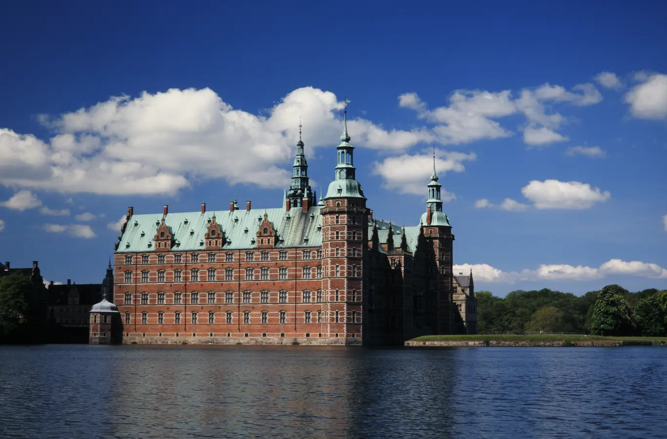 From Frederik II’s original Frederiksborg Palace, the little Bath House remains to this day. It was built in 1580, and the richly-decorated sandstone portal with fluted, Ionic columns and with lion masks on the pedestals and column shafts still bears Frederik II’s motto: "Mein Hoffnung zu Gott allein".