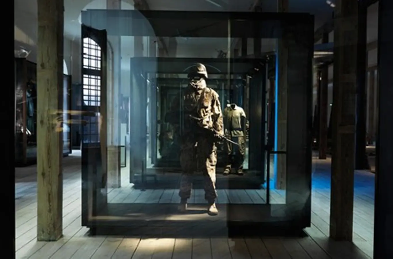 The exhibition is designed as a 160 metre long "gun barrel" of showcases viewers can go in and out of, displaying examples from 500 years of war history. "Denmark’s Wars" is flanked by a selection of the museum’s other collections – from hunting weapons to aircraft models to samurai armour.