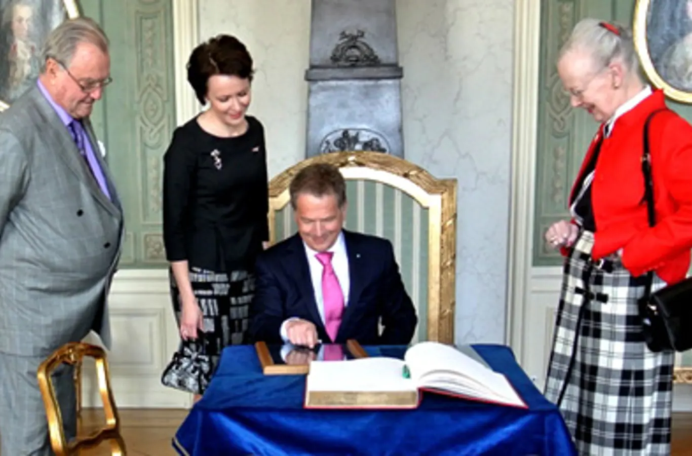 In connection with the recently-concluded state visit from Finland, The President and The First Lady followed a more than 150 year-old custom of signing one of the window panes at Fredensborg Palace on Friday, 5 April.