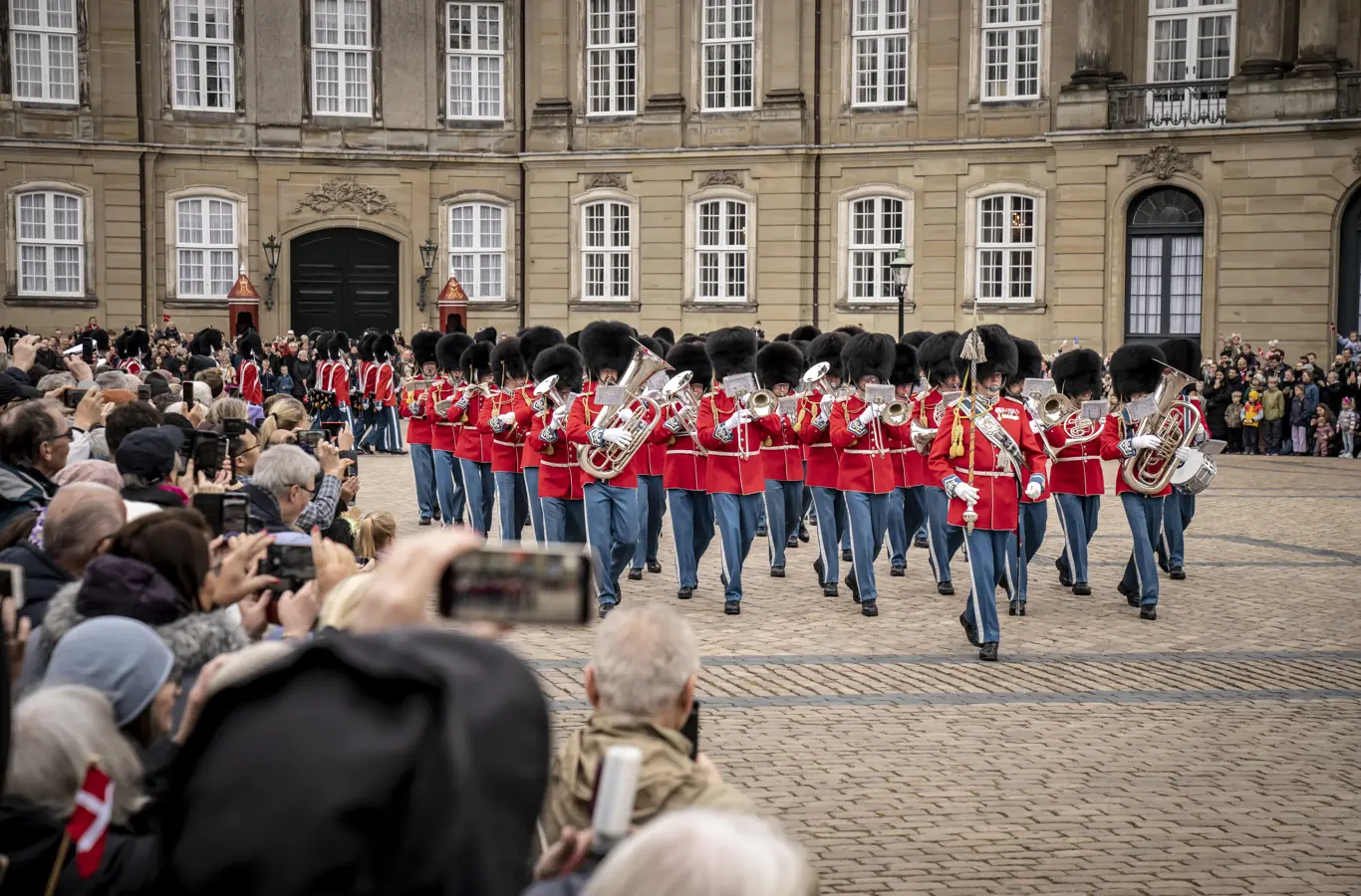 Since 1972, a King’s Guard has been established at 12:00 at Christian IX’s Palace when HM The Queen has been in residence. As a result of the succession of the throne, the King’s Guard ceremony changes.