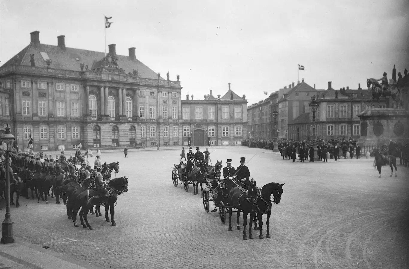 The Royal Mews introduced the Barouche at the beginning of the 1900s, when it became popular to drive horse-drawn carriages “à la d’Aumont”. The modern carriage was driven by riders mounted on horses instead of the traditional coachman on the carriage. The carriage, which among other things was used during Christian X’s border crossing during the celebration of Reunification with Southern Jutland in 1920, was originally a closed Viennese carriage built by the Copenhagen court carriage builder Henry Fife. But, after a major conversion, it had been given a calash canopy and the coachman’s box had been removed, which is why it is now an open carriage.