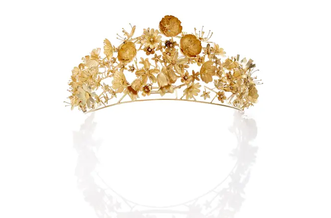 In Queen Margrethe’s collection, one can find, among other things, the palmette tiara and the sapphire set with necklace and earrings which Frederik IX had made as wedding gifts for his daughter, heir to the throne Princess Margrethe. Other important jewels are the ruby and pearl set, which was a silver wedding anniversary gift from Prince Henrik, and the Greenlandic gold tiara, the flower tiara Naasut – a gift from Greenland in connection with the 40th anniversary of The Queen’s reign in 2012.