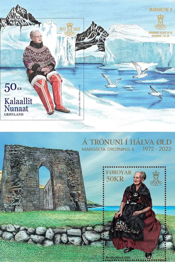 In Greenland and on the Faroe Islands, the 50th anniversary of HM The Queen’s accession to the throne is being marked among other ways with new postage stamps. The creation of the two stamps has been extensive, and techniques dating back 1000 years have been used in the process.