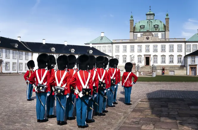 On Fridays, either the Royal Life Guard’s Band or the Drum Corps takes part in the changing of the guard. On this day, the march begins at Fredensborg Station.