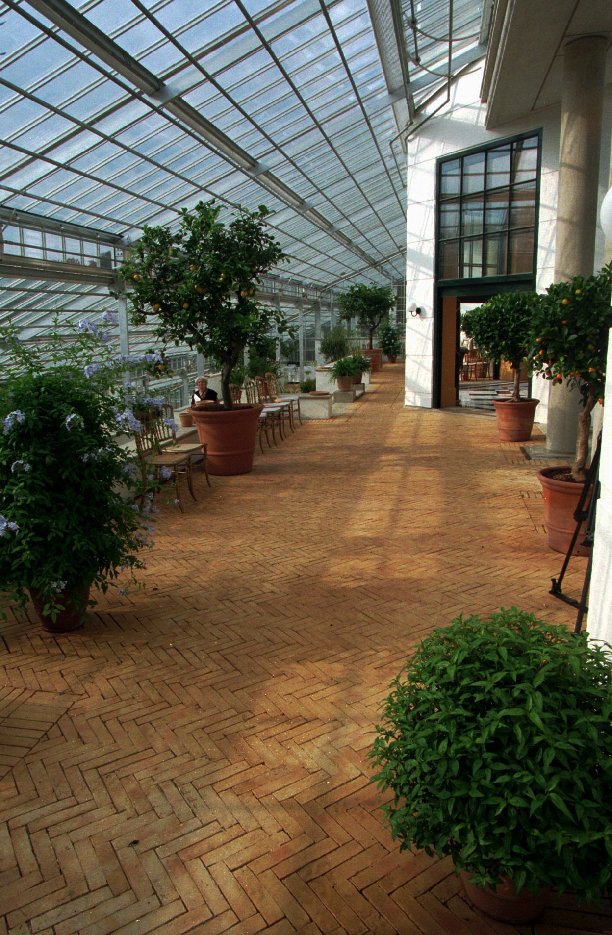 There are approximately 350 plants of various sizes in pots and vessels in the Orangery, which among other things include 14 large citrus trees, 17 Seville orange trees in large Versailles wooden boxes, 50 laurel plants, and 75 myrtles.