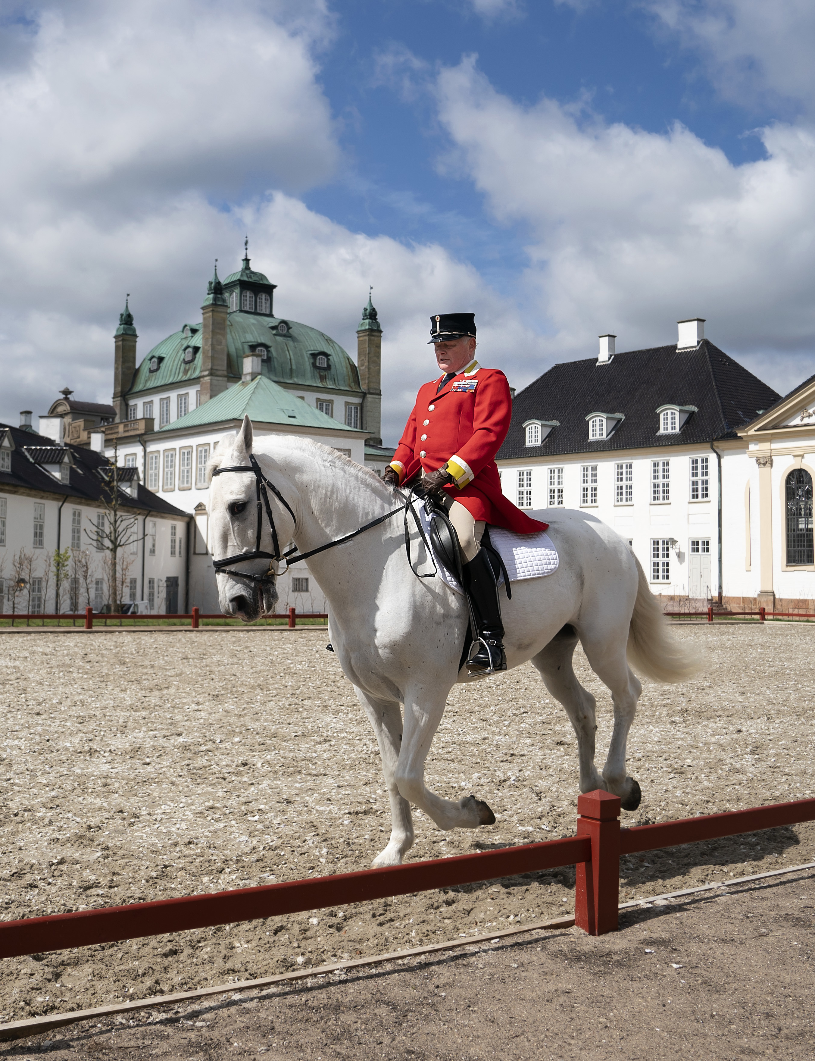 On the south side of the newly rebuilt riding ground facility at Fredensborg Palace lies the residence of The Royal Family, the Chancellery House. The low wing, which is connected to the main palace via the stable buildings and the chapel, frames the eastern part of the palace complex.