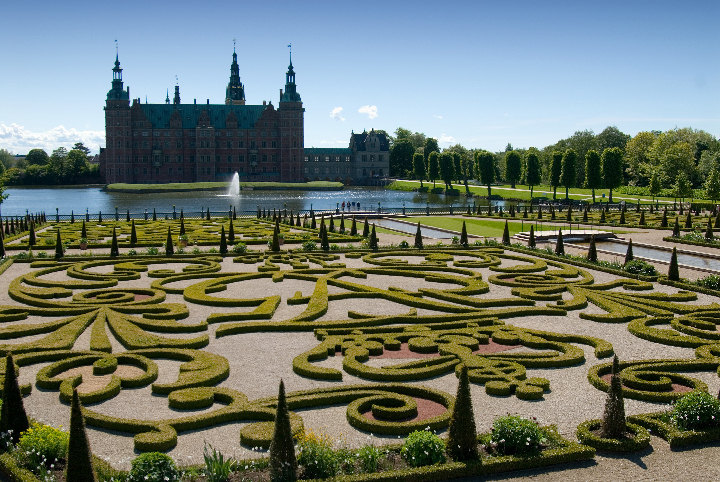 From Frederik II’s original Frederiksborg Palace, the little Bath House remains to this day. It was built in 1580, and the richly-decorated sandstone portal with fluted, Ionic columns and with lion masks on the pedestals and column shafts still bears Frederik II’s motto: "Mein Hoffnung zu Gott allein".