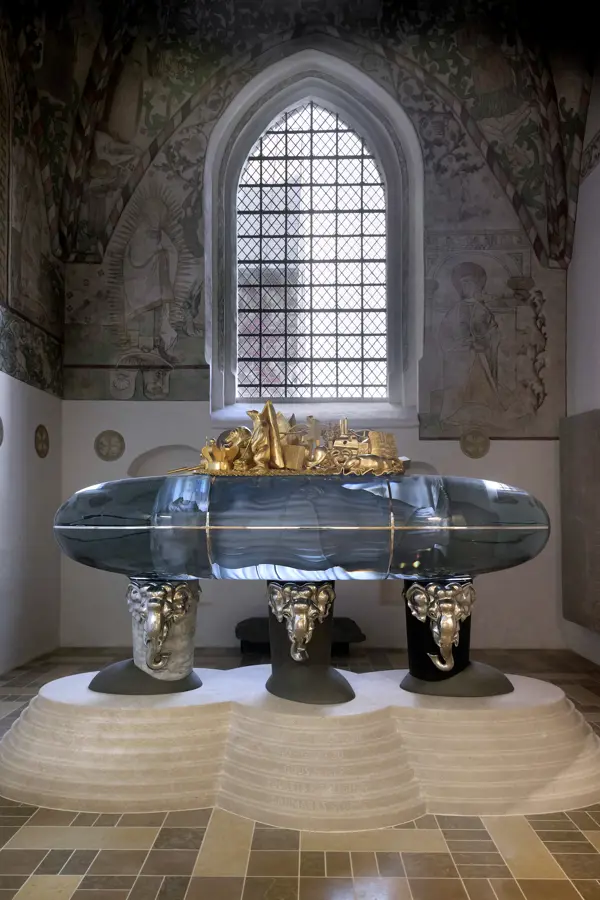 H.M. Dronningens gravmæle er nu opstillet i Roskilde Domkirke