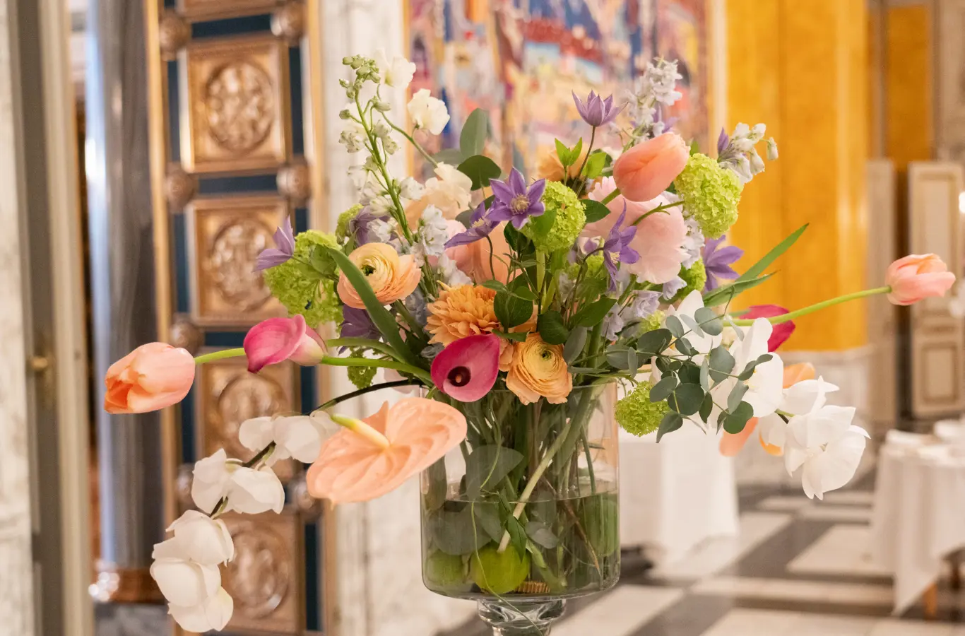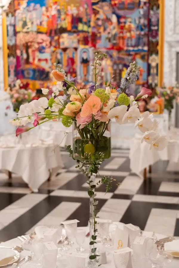 Blomsterdekorationer ved aftenselskab for kunst og kultur den 28. februar 2025 på Christiansborg Slot.
