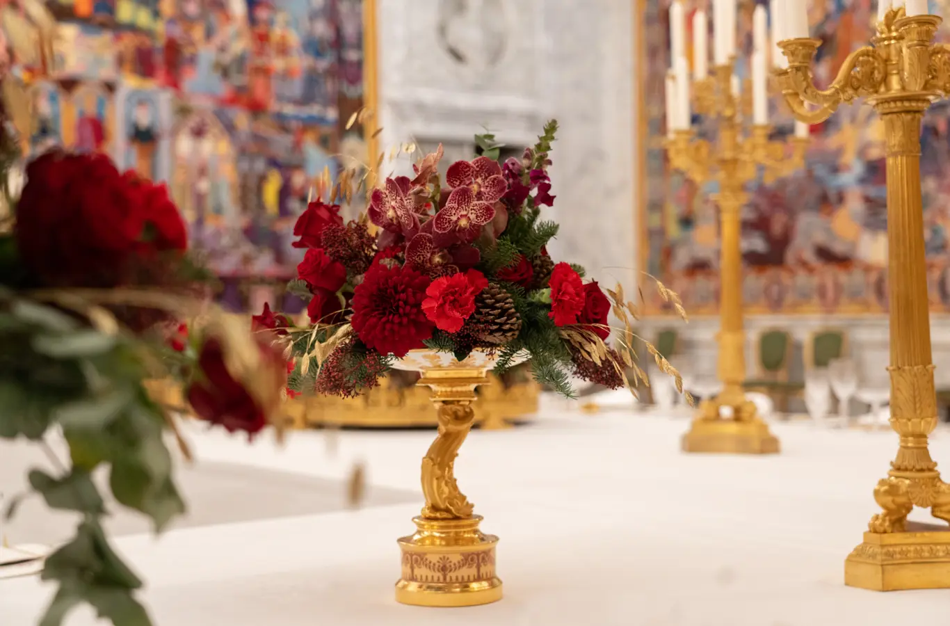 Blomsterdekorationer ved gallataffel den 6. december 2024 til ære for Præsidenten for Den Arabiske Republik Egypten, H.E. Abdel Fattah Al Sisi på Christiansborg Slot.