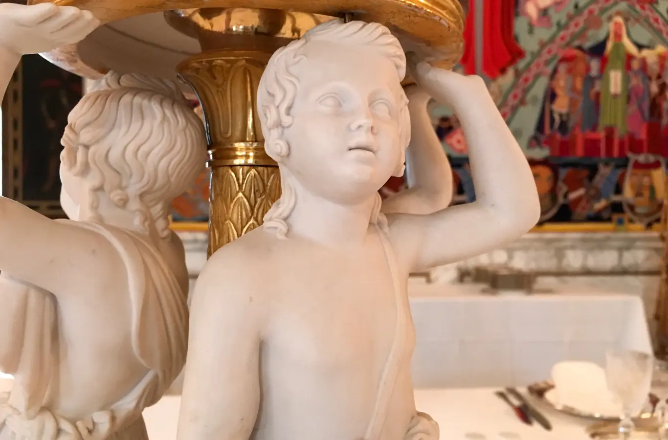Til taffelbordet hører selvfølgelig borddekorationer, der består af bronzekandelabre, spejlplateauer og postmenter til blomsterskåle udført i bronze og porcelæn. Postmenterne, der er fra slutningen af 1800 tallet og dekoreret med bl.a. løver og delfiner, anvendes også ved nytårstaflet den 1. januar.