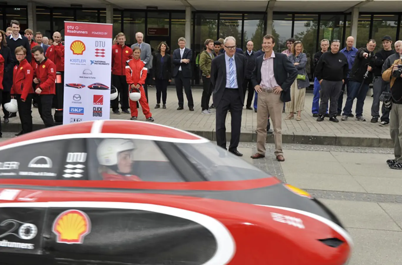 H.K.H. Prins Joachim deltager den 16. maj 2017 i præsentation og testkørsel af DTU’s økobiler, "DTU Roadrunners", i Lyngby.