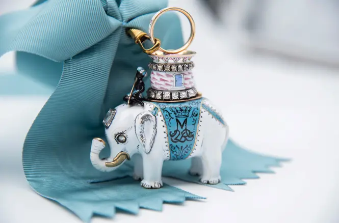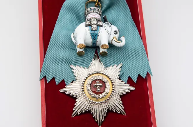 Elefantordenen er den ældste og fornemste danske ridderorden og har rødder helt tilbage i 1400-tallet. Ordenen gives hovedsageligt til kongelige og statsoverhoveder. En Elefantorden er – i princippet – kun til låns og skal derfor returneres til Ordenskapitlet, når en elefantridder er afgået ved døden. Det betyder, at de fleste elefanter har været i brug flere gange. Den konkrete elefant har til lejligheden gennemgået en mindre restaurering, hvor den blandt andet er blevet påført Dronningens monogram, idet en elefant ved tildelingen altid bærer den siddende monarks monogram.
