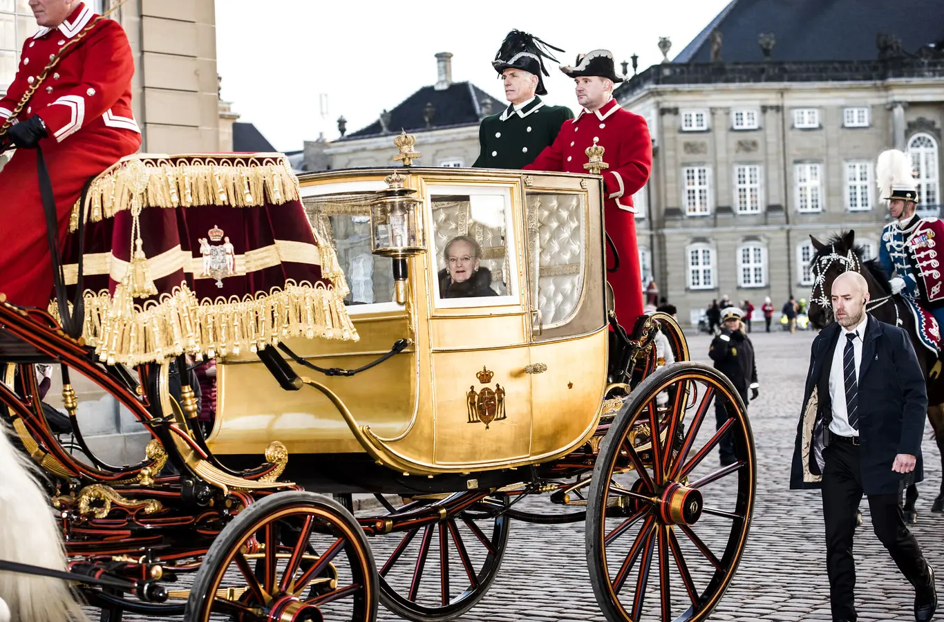H.M. Dronningen kører i Guldkareten fra Amalienborg til Christiansborg Slot