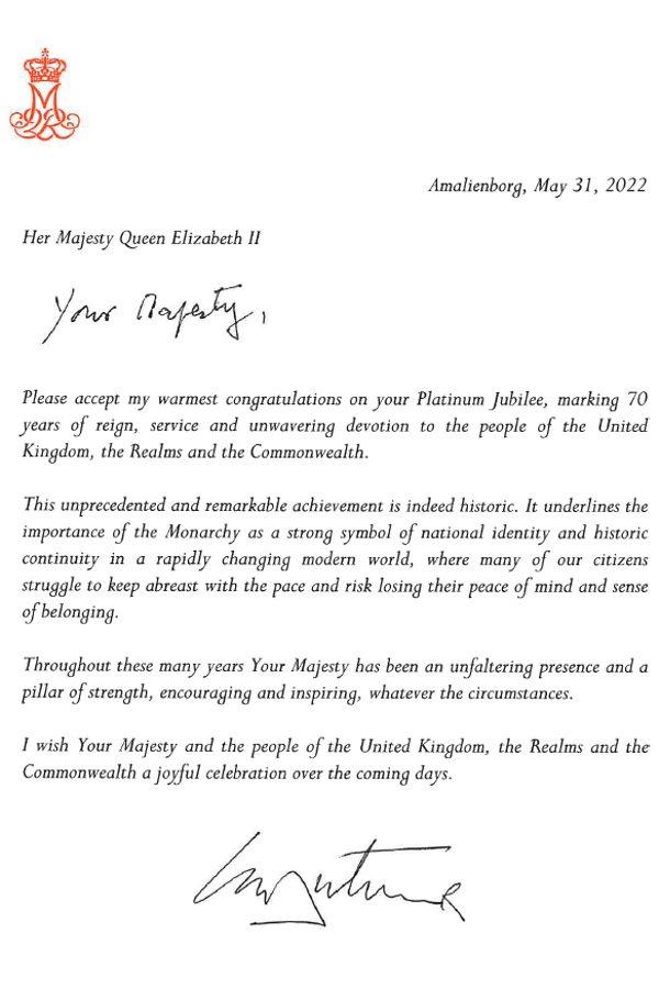 H.M. Dronningen sender lykønskning til H.M. Dronning Elizabeth II