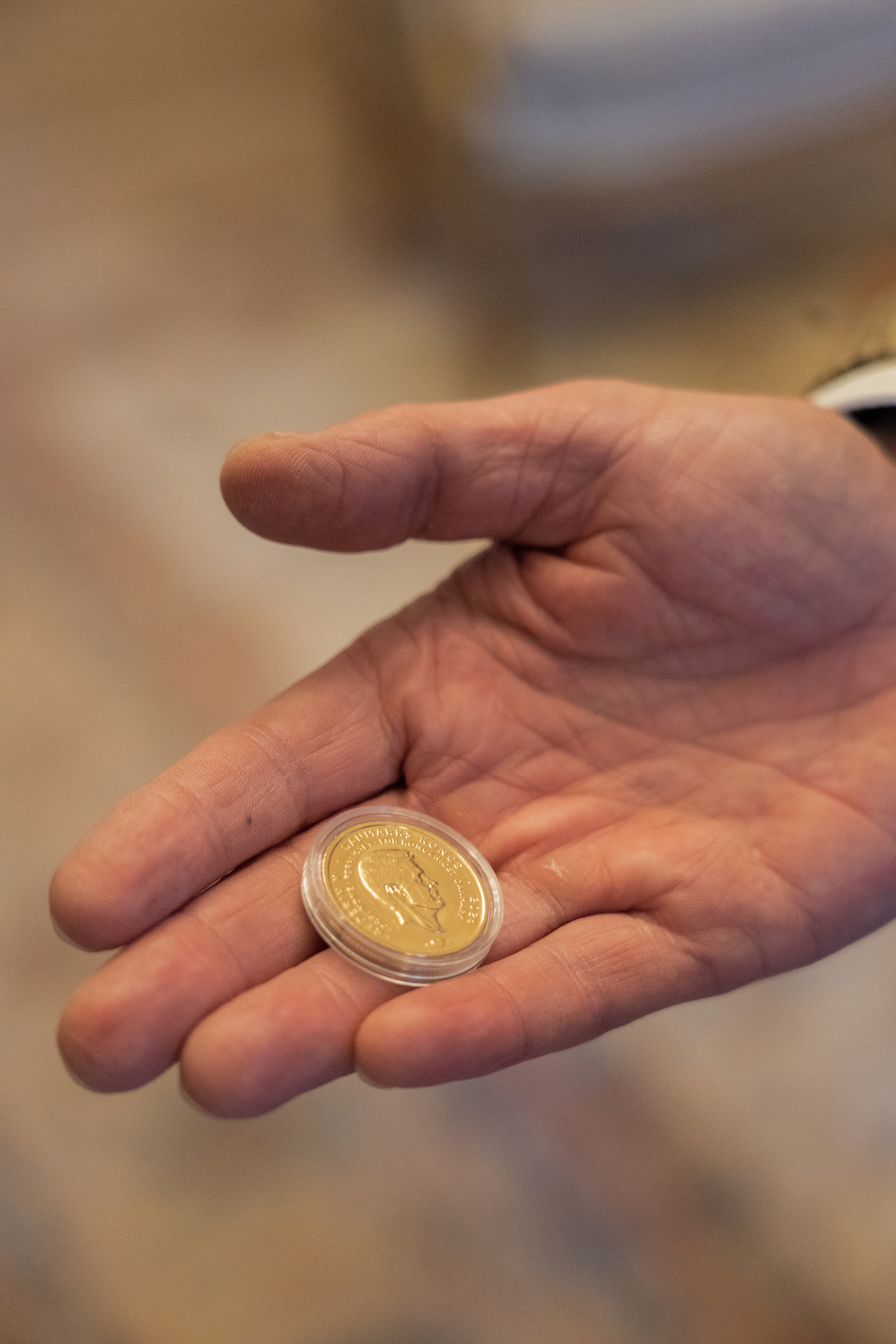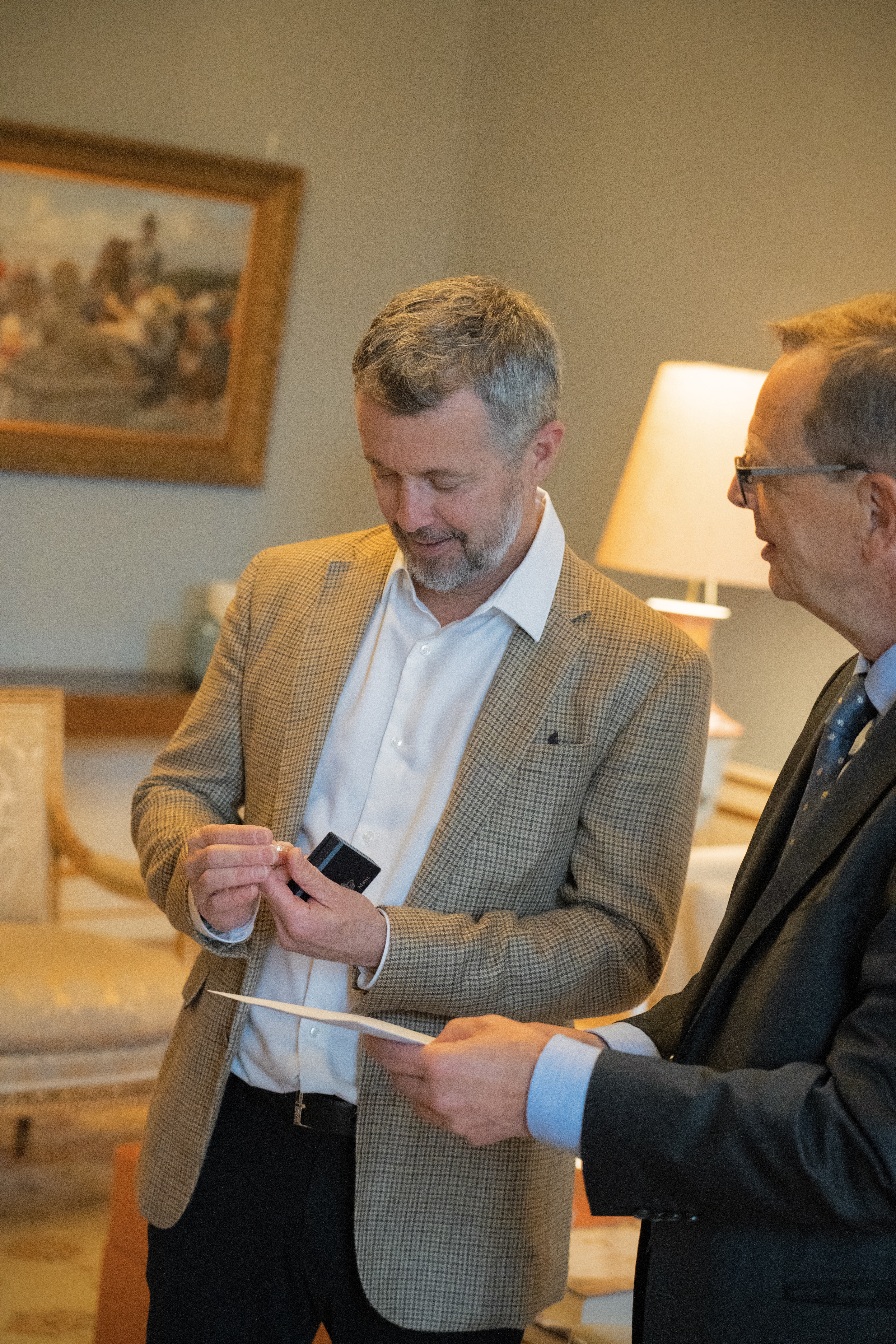 H.M. Kongen modtog den 24. september 2024 et eksemplar af den nye tronskiftemønt, der med et portræt af henholdsvis Kongen og H.M. Dronning Margrethe symboliserer tronskiftet.