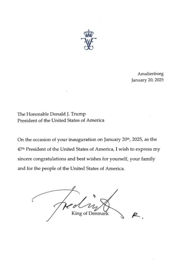 Hans Majestæt Kongen har i dag sendt følgende lykønskning til USA's Præsident, Hans Excellence Donald J. Trump: