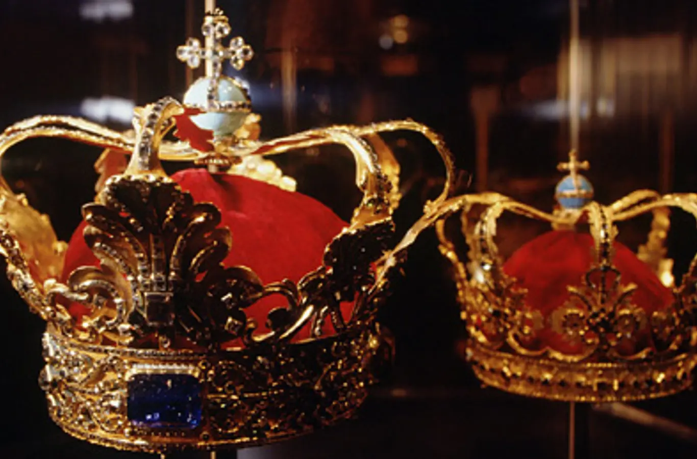 De danske kongers og dronningers kroner udstilles sammen med kronregalierne på Rosenborg Slot.