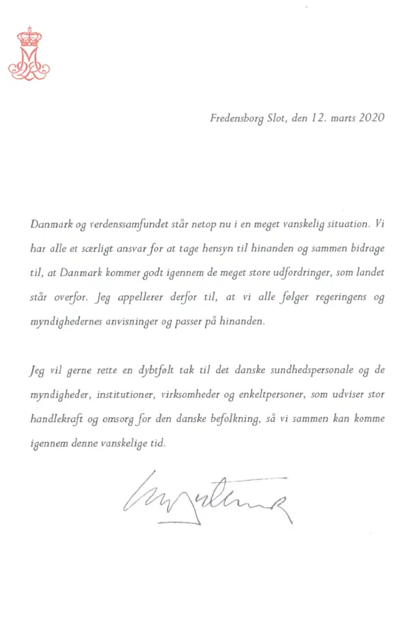 Hendes Majestæt Dronningens udtalelse om den aktuelle krise.