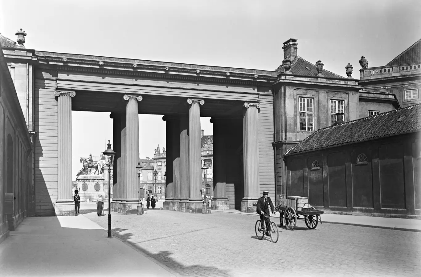 Kolonnaden på tværs af Amaliegade forbinder to af Amalienborgs palæer, Christian IX’s Palæ og Christian VII’s Palæ.