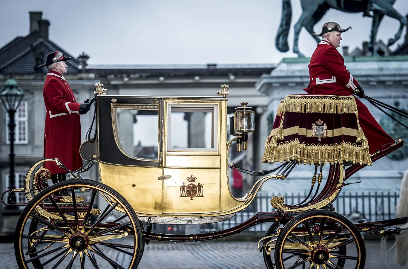 Kongeparret kører den 7. januar 2025 i Guldkareten fra Amalienborg til Christiansborg Slot i anledning af nytårskur.