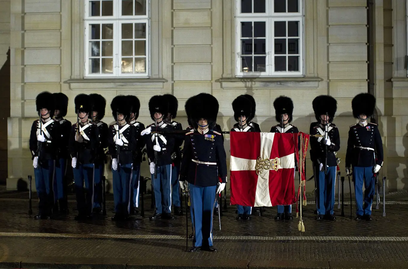 Traditionen tro vil Den Kongelige Livgardes æresbevisning finde sted på Amalienborg Slotsplads i forbindelse med H.M. Dronningens nytårstale den 31. december 2019.