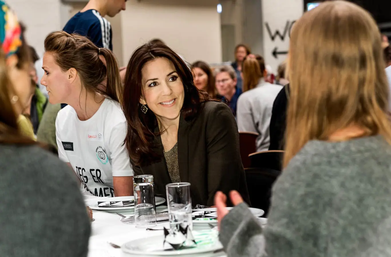 H.K.H. Kronprinsessen deltog mandag den 25. april 2016 i arrangementet ”Danmark spiser sammen” i Nørrebrohallen, København, hvor 400 personer var mødt op til fællesspisning.