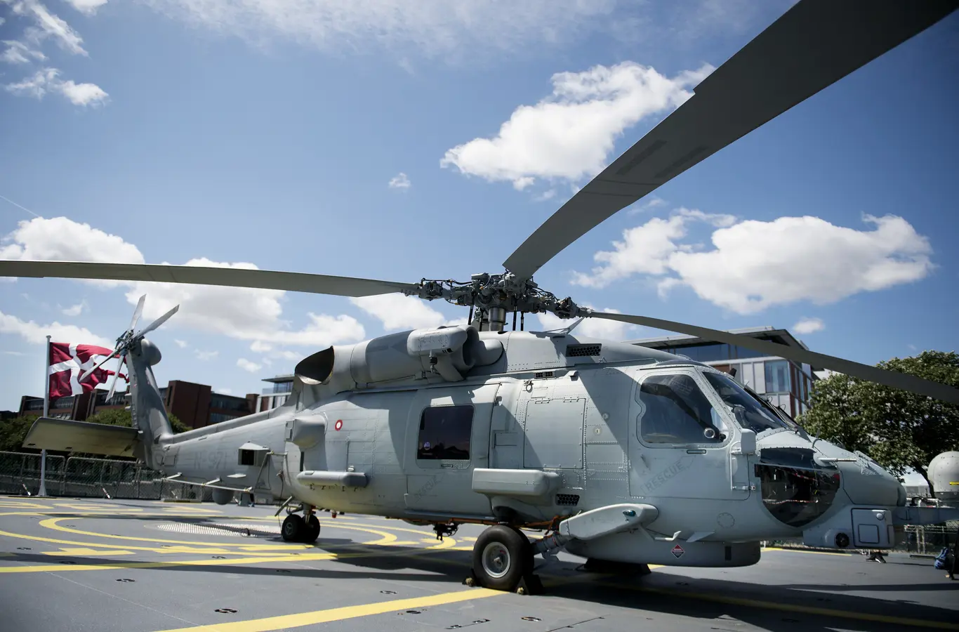 Den officielle modtagelsesceremoni af de nye SEAHAWK-helikoptere fandt sted på fregatten IVER HUITFELDT på Langeliniekaj i København. Her deltog også blandt andre forsvarsminister Peter Christensen og forsvarschef, general Peter Bartram.