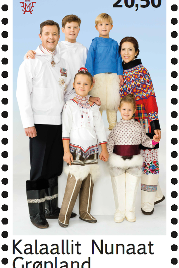 Et nyt foto af Kronprinsparret og deres fire børn med grønlandske nationaldragter vil fra i dag være motiv på et nyt frimærke i Grønland.