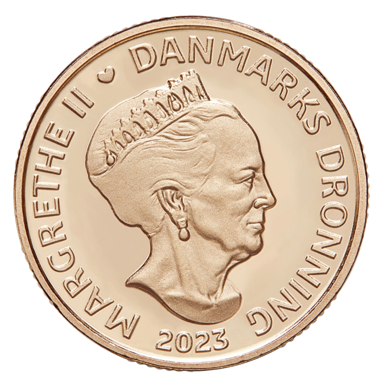Fredag den 26. maj 2023 udsender Nationalbanken nye 20-kronemønter i cirkulation. Mønten prydes af et nyt portræt af Hendes Majestæt Dronningen, udført af billedhugger Eva Hjorth.