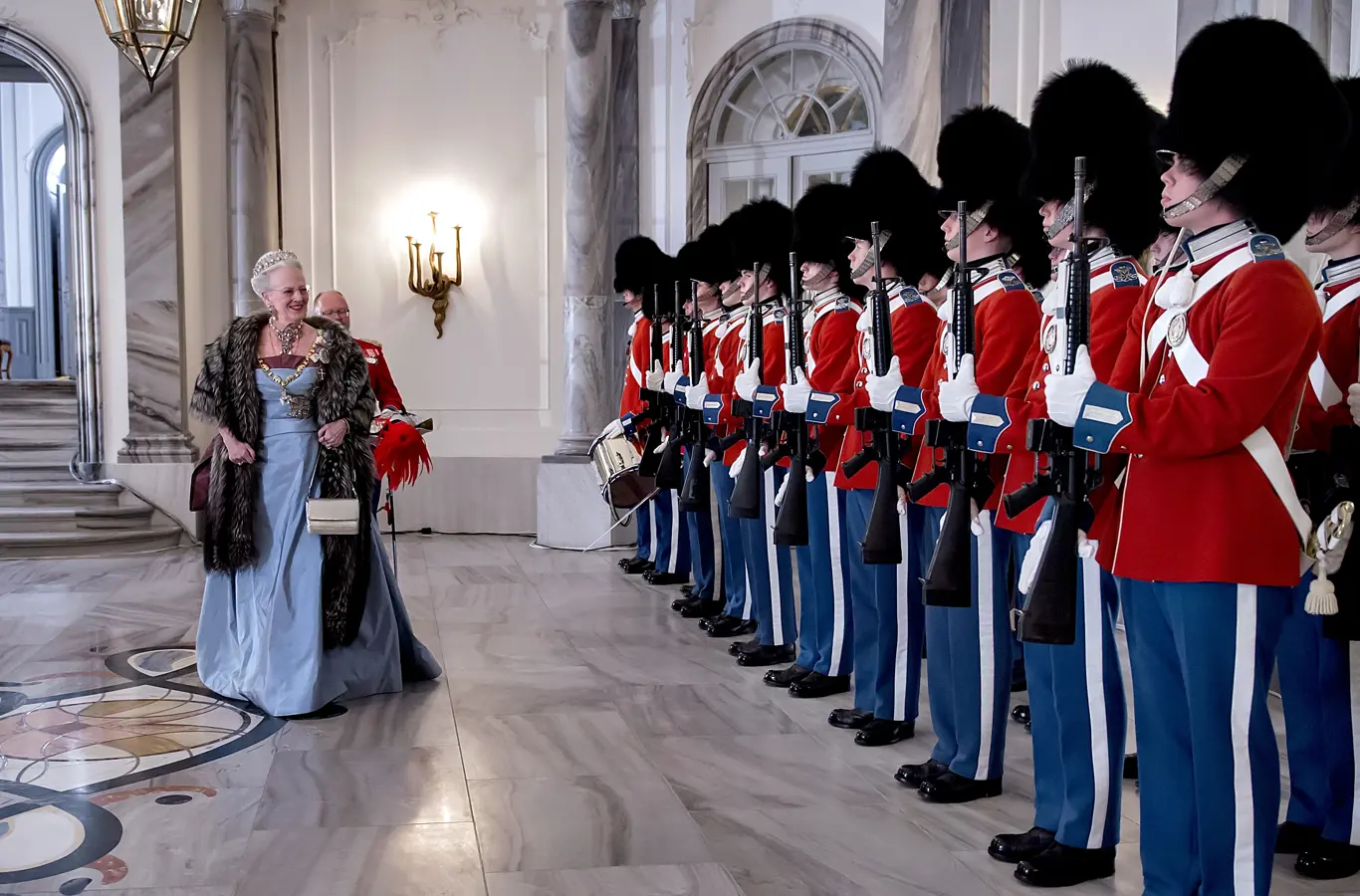 Dronningen afholder sammen med Kronprinsparret lille nytårskur tirsdag morgen den 4. januar 2022 for Højesteretsdommere, Den Kongelige Livgardes og Gardehusarregimentets officerskorps i Christian VII's Palæ klokken 9.30.