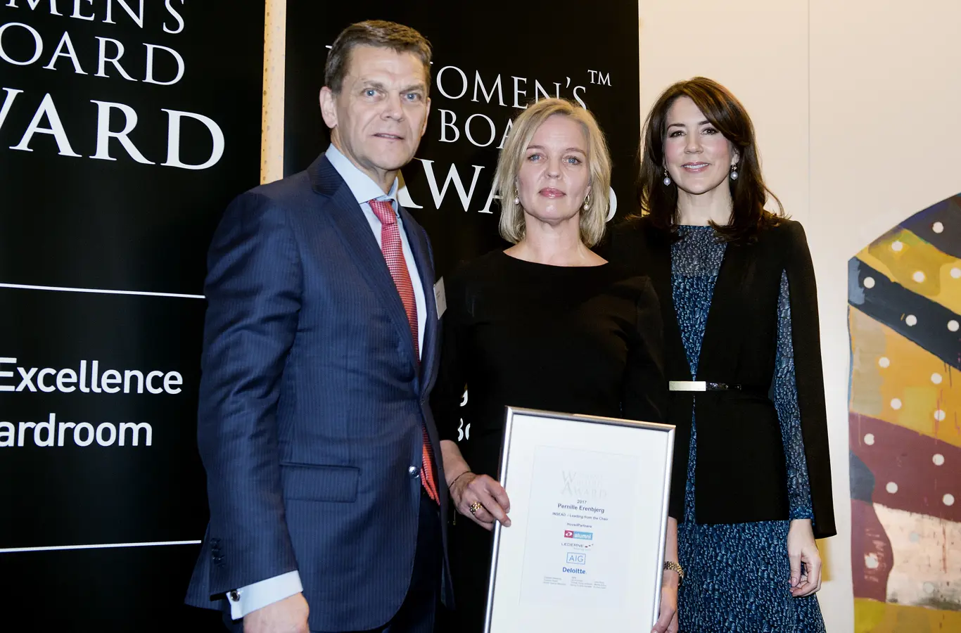 Kronprinsessen holdt tale og overrakte sammen med juryformand Ole Andersen Women’s Board Award 2017 til prismodtager Pernille Erenbjerg, CEO i TDC. Sammen med prisen modtog Pernille Erenbjerg et bestyrelsesstipendiat til den franske handelshøjskole INSEAD.