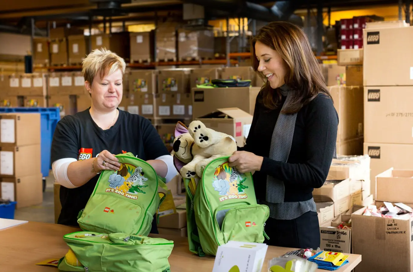 H.K.H. Kronprinsessen deltager den 23. maj 2017 i pakning af Mary Fondens rygsække i LEGO Charity i Billund til børn på krisecentre.