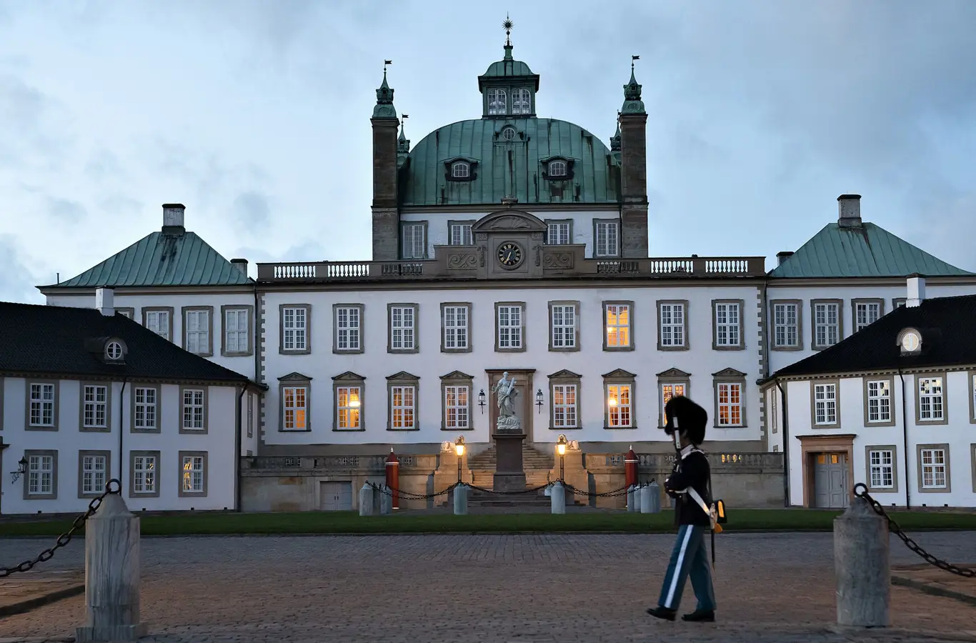 Dronningen er som afslutning på bybesøget i Allerød Kommune vært ved en reception for indbudte gæster på Fredensborg Slot.
