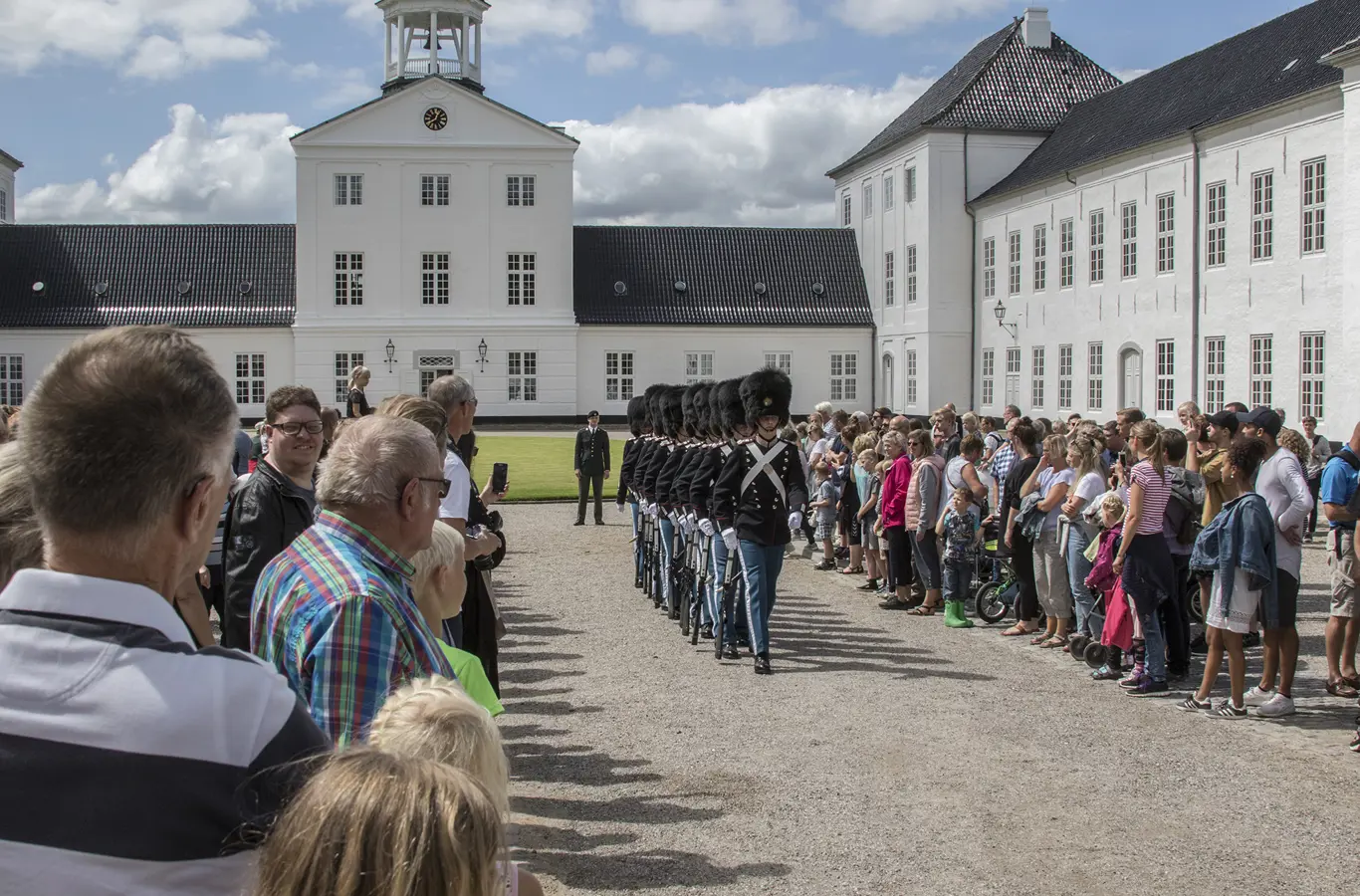 Oplev Den Kongelige Livgardes daglige vagtskifte ved Graasten Slot i forbindelse med H.M. Dronningens residens henover sommeren.