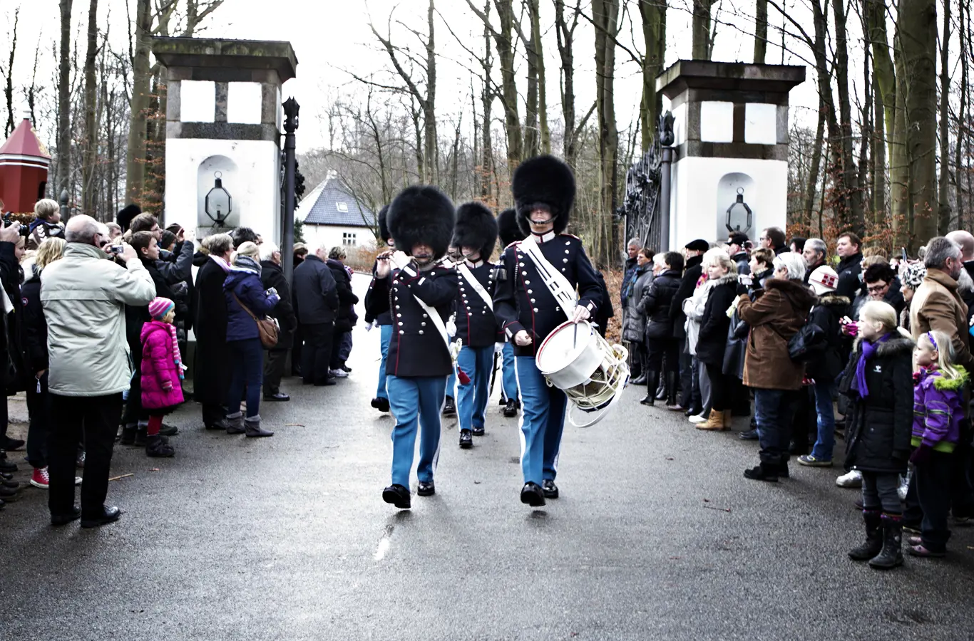 Oplev Den Kongelige Livgardes daglige vagtskifte ved Marselisborg Slot i Aarhus i forbindelse med Regentparrets residens henover julen.